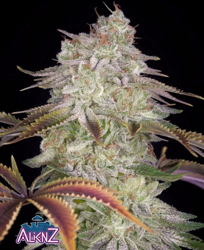 La AlienZ crece con el fuerte vigor de la Velvet Moon, en una hermosa forma típica de árbol de Navidad con ramas secundarias largas y fuertes. Las ramas se llenarán de flores, con entrenudos de longitud media, y luego formarán colas largas y anchas al final de la floración. La AlienZ heredó la asombrosa cantidad de resina pegajosa de la combinación de la Watermelon Zkittlez y la Velvet Moon, lo que la convierte en una gran candidata para las extracciones con una gran producción de flores y un olor penetrante.