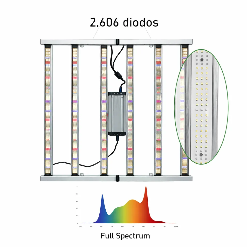 Su formato de panel plano y amplio permite una distribución uniforme de la luz sobre el área de cultivo, mientras que su diseño modular facilita la instalación en espacios de cultivo de aproximadamente 110×110 cm. Estas luminarias son ideales tanto para cultivadores que buscan maximizar el potencial de sus plantas como para ambientes donde se requiere un espectro de luz eficiente y constante durante largos ciclos de cultivo.