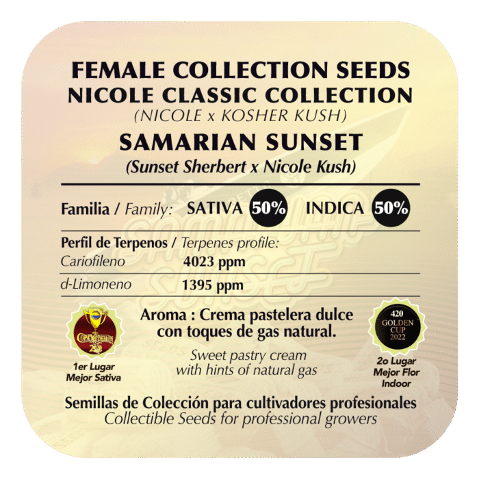 Cosechada cerca a los ríos y mares de la Perla de América nace un cultivar con colores mágicos al igual que los atardeceres grandiosos de nuestra amada Santa Marta. Múltiple ganadora de copas y portadora de los genes más famosos de los Estados Unidos, la unión de Sunset Sherbet y Nicole Kush crea flores densas, dulces y visualmente muy atractivas acompañadas de un efecto fuerte y duradero.